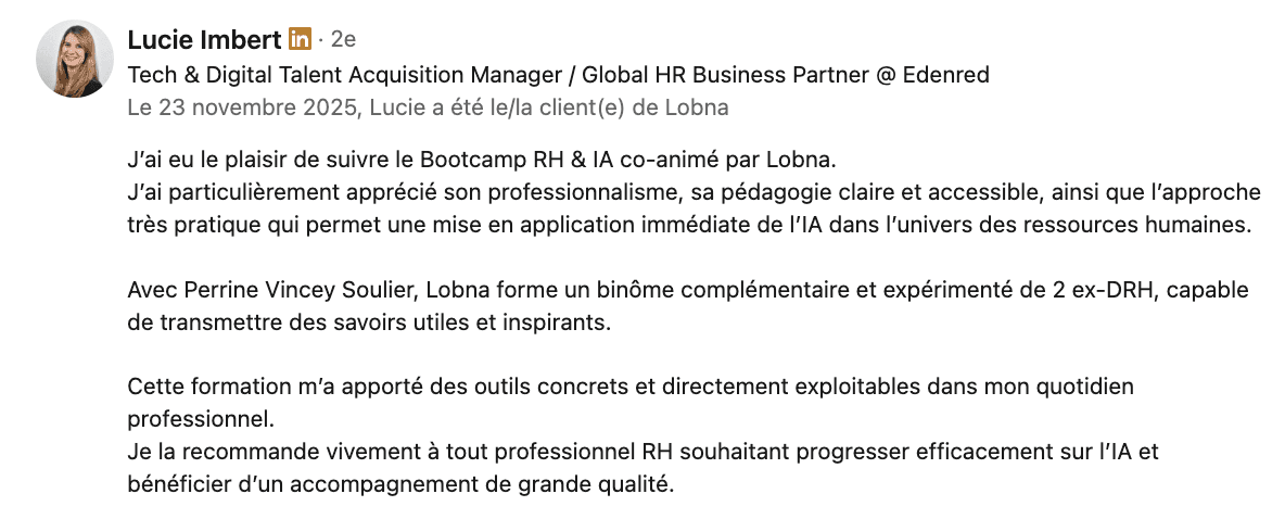Nous devons passer de "gestionnaire RH" à "architecte du futur", gérer aujourd’hui, en préparant demain. L'IA, bien pensée et bien intégrée, est un formidable outil d'empowerment de la fonction RH